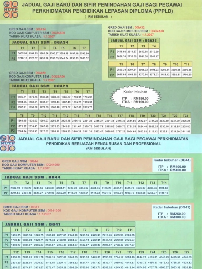 Jadual tangga gaji guru ssm terkini dari gred dg29 hingga dg54. Tangga gaji pensyarah universiti dg52 (rm6439.44 bagi 10 tahun) vs gaji guru sekolah dg52 (rm6322.59 untuk tempoh 8 tahun). (ii) diploma dalam bidang berkaitan yang diiktiraf .